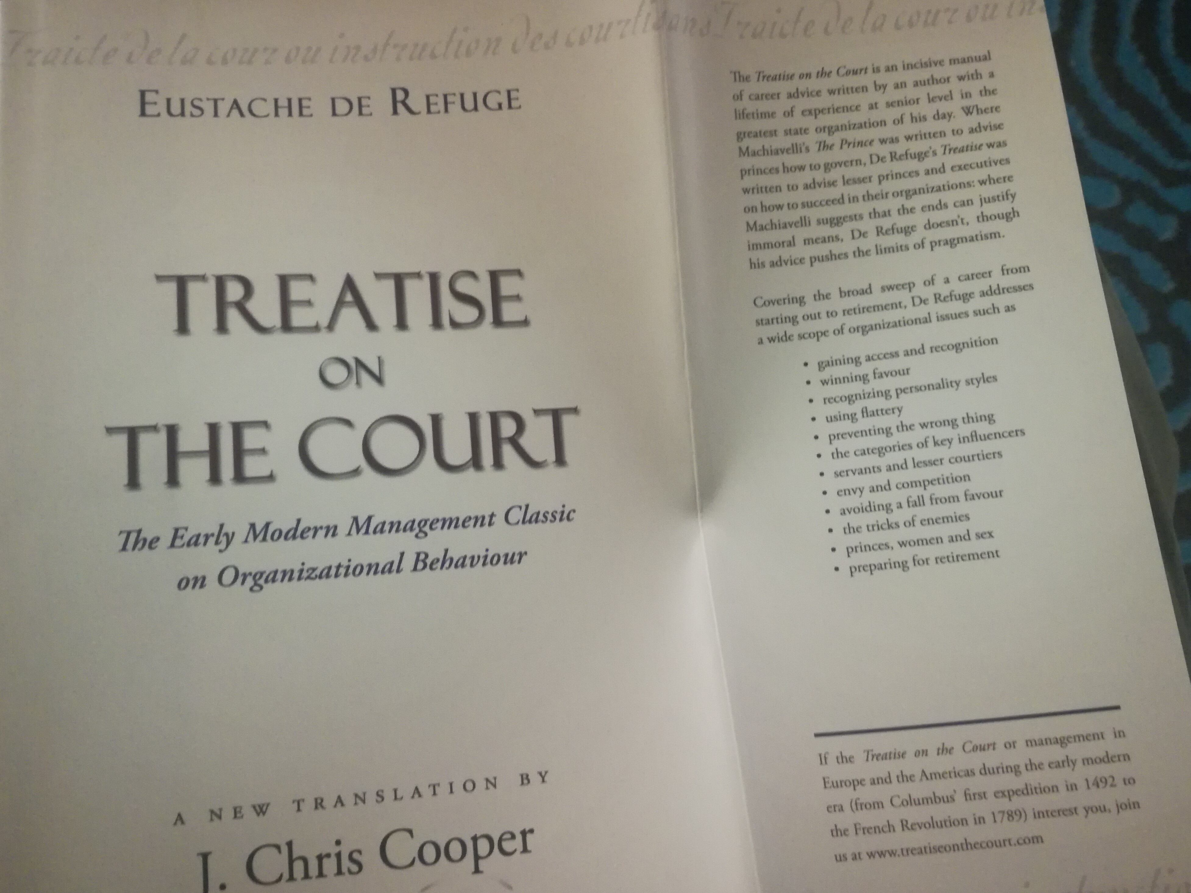 My airport read. Tullock translated it as A Guide for the Ambitious Courtier in 1963