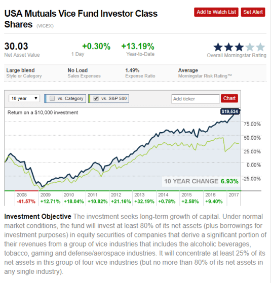 Ethical investing is back in the news again; time to look at the investment performance of a fund specialising in investing in the sin industries.