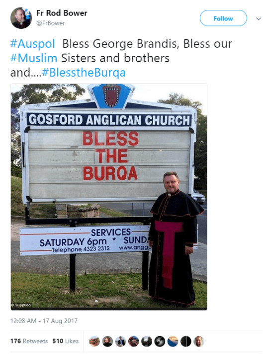 I’m staggered a person who claims to be a Christian Minister can applaud garb worn by people who are muslims. Unless they can convert they are going to hell.