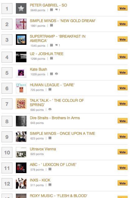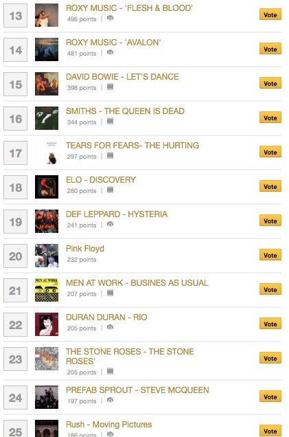 The top 25 albums of the 1980s, as voted in an online poll. This is 1 to 12.