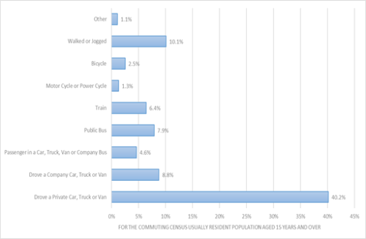 A small minority of New Zealand adults commute by bus or train even in the big cities. Figure 2 shows that even in Auckland, for those that left home for work, only 8.3% commute via public transport. In Wellington, 14.1% commute to work from home via public transport – see figure 3.