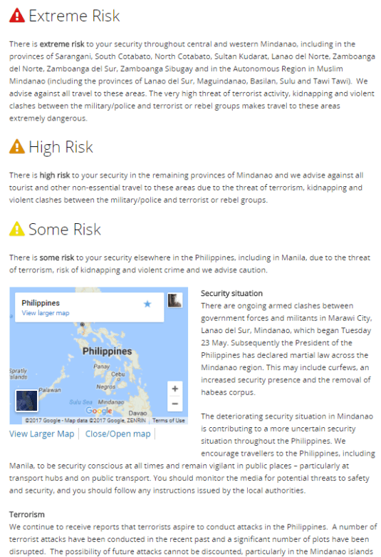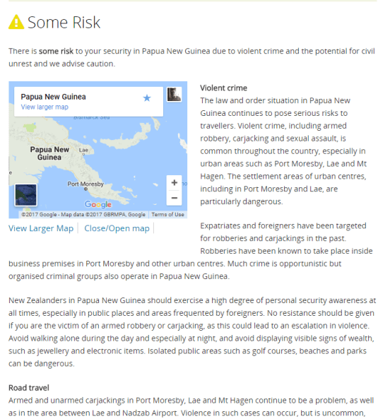 The Manus Island debates led me to notice I have travelled in far more dangerous places such as the Philippines. Also, if you are thinking are going to Bali, read its travel advisory.