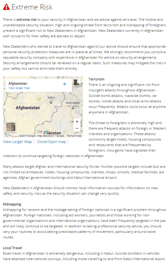 My point is that the PNG is not the only dangerous country in Asia. If the asylum seekers from Afghanistan, and some are, the travel advisory is you are not safe even if you bring your own bodyguards.