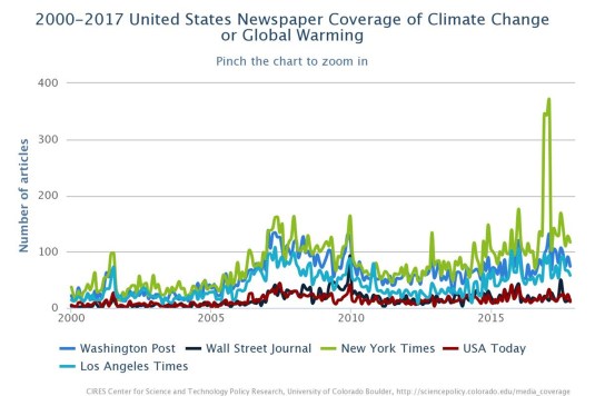 Nacu-Schmidt, A., Oonk, D., Pearman, O., Boykoff, M., Daly, M., McAllister, L., and McNatt, M. (2017). United States Coverage of Climate Change or Global Warming, 2000-2017. Center for Science and Technology Policy Research, Cooperative Institute for Research in Environmental Sciences, University of Colorado, Web. [Date of access.] http://sciencepolicy.colorado.edu/media_coverage.