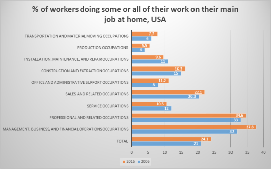 Surprisingly little change in the percentage working from home since 2006 despite the emergence of smart phones and fast broadband