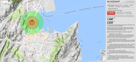 See http://nuclearsecrecy.com/nukemap/?&kt=0.1&lat=51.499167&lng=-0.124722&airburst=0&hob_ft=0&zm=15