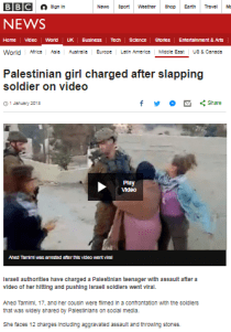 On January 1st the BBC News website published a report titled “Palestinian girl charged after slapping soldier on video“.