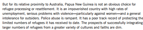 You cannot criticise Trump and the Pacific solution to boat people coming to Australia at the same time? Both Trump and Amnesty International agree that certain developing countries are not very nice places to go to and the people there are rather rough and intolerant of outsiders.