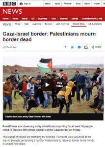 On the morning of March 31st the BBC News website report published a report that was originally titled “Gaza-Israel border: UN seeks investigation over protest deaths”. Some seven hours afterwards that headline was changed to “Gaza-Israel border: Palestinians mourn border dead” and, like many versions of an article on the same topic that preceded it, the report refrained from informing BBC audiences that the mass protest on the Gaza border, which on March 30th included numerous violent incidents, was initiated and organised by Hamas and additional terror factions in the Gaza Strip.
