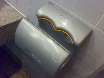 But now there’s an even better reason to avoid public hand dryers—both the hot-air dryers with nozzles and the jet dryers, shown respectively below: