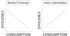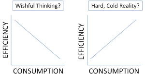 A few weeks ago, I went to an interesting talk by Dr. Steve Hallett at Purdue’s Botany and Plant Pathology Department. It was about how efficiency wasn’t going to save the planet, and he referred to the Jevons paradox/effect. Basically, even though we would like to think that more efficient use always means decreased use, historically, increases in the efficiency of many technologies have actually increased consumption.