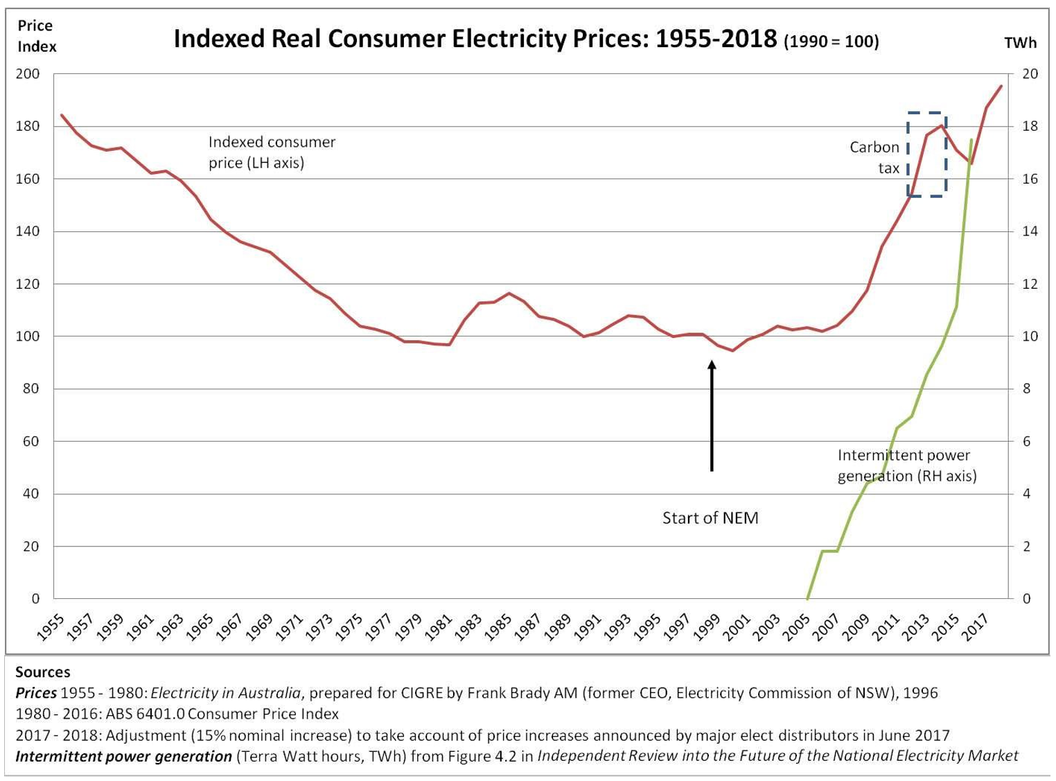 Those countries whose energy policies have been hijacked by renewable energy rent seekers – pumping heavily subsidised, utterly unreliable and completely chaotic wind and solar – have watched their power prices double in a veritable heartbeat. The circus really only got started around 2000 (as an incident of countries signing up to the economic suicide pact aka the Kyoto protocol), but, like a runaway train, the destruction wrought continues to gather momentum.