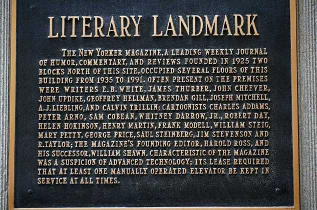 UPDATE: forgot to add this picture of the plaque adorning the building where the New Yorker was founded. Check out the last sentence!