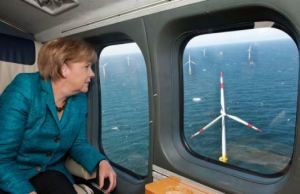 German Chancellor Merkel surveys an offshore wind site [image credit: evwind.es]