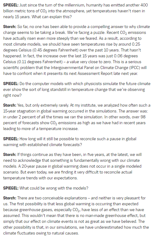From http://www.spiegel.de/international/world/interview-hans-von-storch-on-problems-with-climate-change-models-a-906721.html interview with United Nations Intergovernmental Panel on Climate Change lead author Hans von Storch