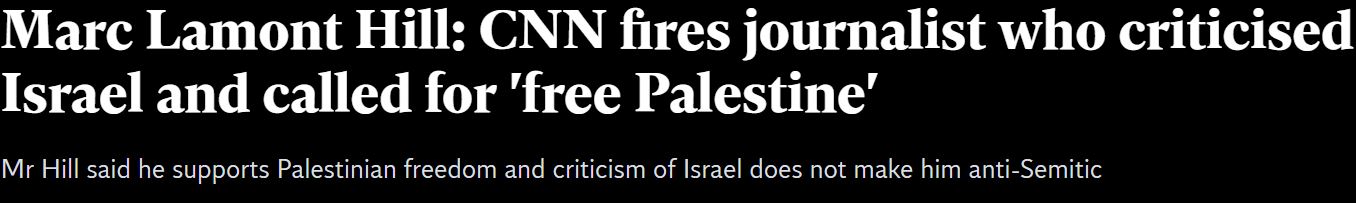If you were to believe this headline at the Independent (of a story cross posted from the Washington Post), you’d believe that CNN fired political commentator Marc Lamont Hill merely for criticising Israel and calling for a ‘free Palestine’.