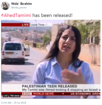 As readers may recall, on July 29th BBC audiences saw and heard several reports on various platforms by BBC Arabic’s Nida Ibrahim relating to the release of Ahed Tamimi from prison.