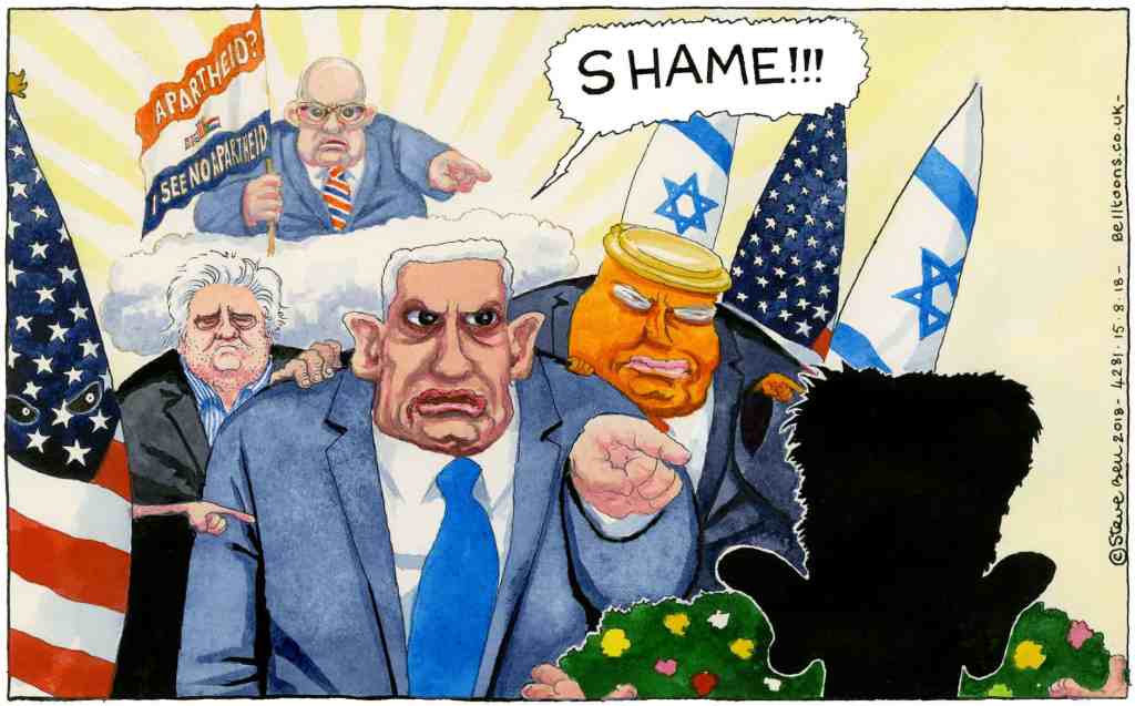 2. Guardian cartoonist Steve Bell ties Zionism to apartheid and white supremacy (See our post for context)