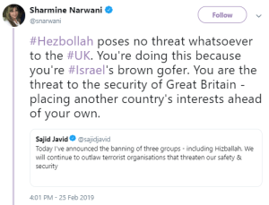 Here are some tweets from a person obviously not pleased by the British Home Secretary’s decision to classify Hizballah as a terrorist group.