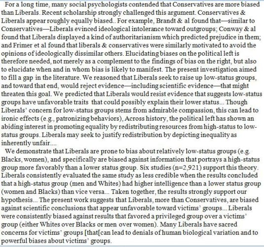 Liberals are more biased than conservatives against evidence that casts low status groups in an unfavorable light. https://t.co/mi9RxIgywi pic.twitter.com/6Ny1NBJmcq