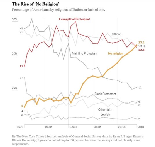 The rise of "No Religion" in the US. This is the graph that has most surprised me this year. Via @wesyang pic.twitter.com/s5UukYy6Ba