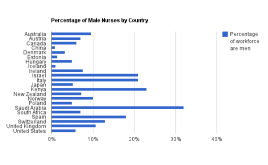 With International Nurses Day approaching I thought I would look at the numbers of male nurses around the world and see how they compared.