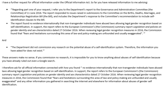 So @TraceyMartinMP’s department told parliament there is no evidence of abuse of gender self-ID but didn’t do any research to check?! @Aniobrien