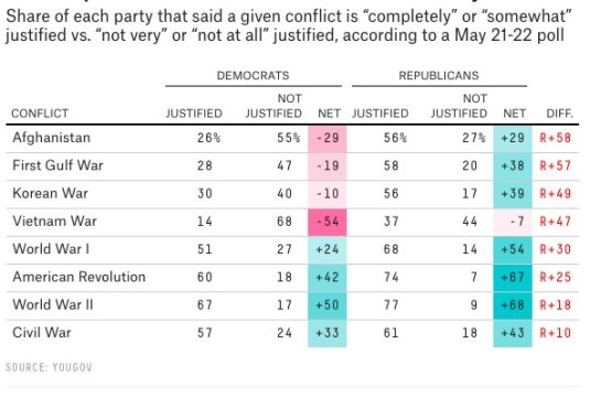 More Republicans than Democrats think wars are justified. https://t.co/dp3EEVkkZ1 pic.twitter.com/jASwdhkHpn