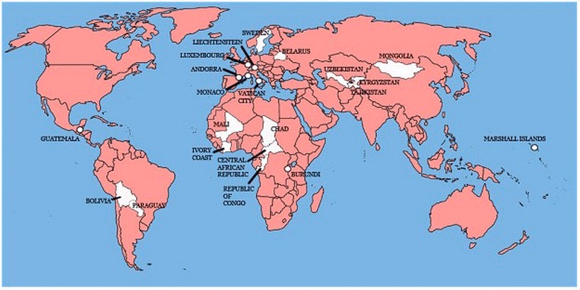 At some point in it’s history, Britain has invaded about 90% of the countries of the world. While most of these states were not a part of the British Empire, all the countries in red sustained some kind of British military presence or government sanctioned incursion. The list of 22 non-invaded countries, which includes São Tomé and Príncipe (though not pictured on the map), was put together by Stuart Laycock in his 2012 book, All the Countries We’ve Ever Invaded: And the Few We Never Got Round To.