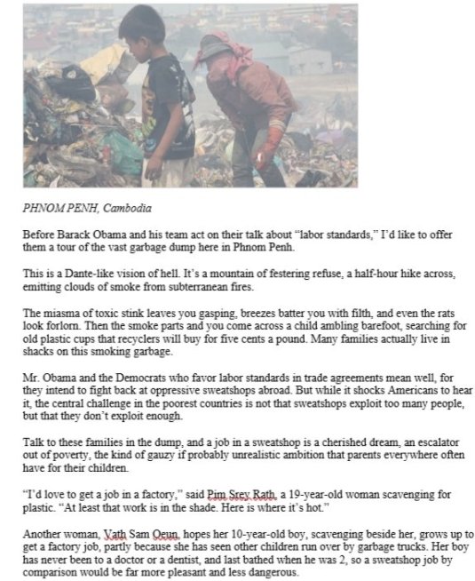 From “Where Sweatshops Are a Dream” https://www.nytimes.com/2009/01/15/opinion/15kristof.html