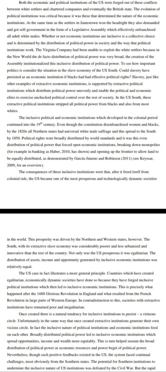 Acemoglu and Robinson on inclusive institutions and American exceptionalism