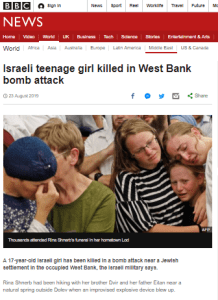 Roughly four hours after a terror attack took place near Dolev on August 23rd the BBC News website published a written report headlined “Israeli teenage girl killed in West Bank bomb attack” and a filmed report titled “West Bank bomb blast kills 17-year-old Israeli girl”.