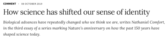 Nathaniel Comfort, author of the risible Nature essay at hand (click on screenshot below), is a professor in the history of medicine at Johns Hopkins University. We’ve met him three times before on this site; he seems to be a postmodernist who dislikes genes, New Atheism, and Richard Dawkins. Now he’s written about. . . . well, it’s hard to discern. If you read the essay (and I both pity you if you do and challenge you to see its point), you’ll see it’s laced with criticisms of Enlightenment values, white males, scientism, and the oppression of the disabled. Oh, and it lauds postmodernism, especially its “other ways of knowing”.