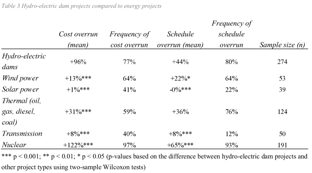 Energy project cost overruns