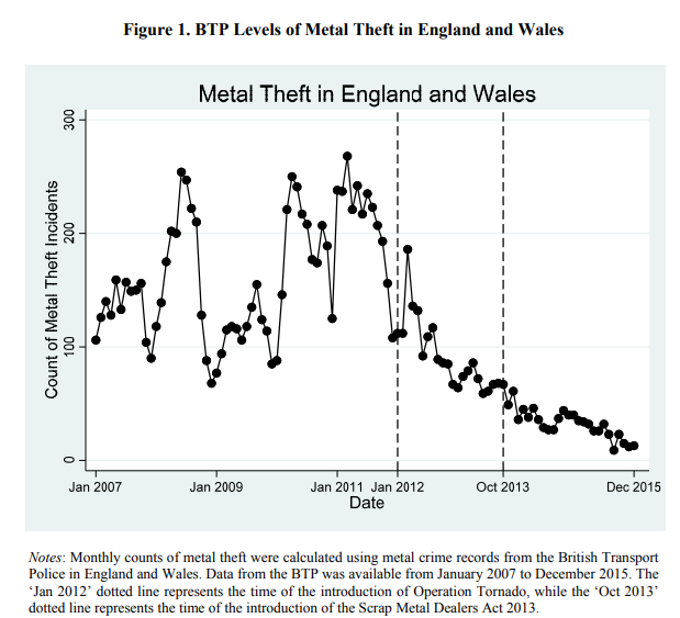 From http://ftp.iza.org/dp11490.pdf Prices, Policing and Policy: The Dynamics of Crime Booms and Busts APRIL 2018 Tom Kirchmaier, Stephen Machin, Matteo Sandi and Robert Witt