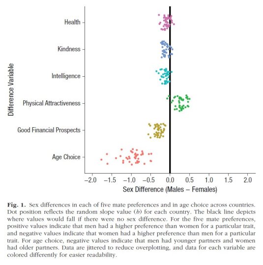 "Men, more than women, prefer attractive, young mates, and women, more than men, prefer older mates with financial prospects… Additionally, women indicated slightly higher preferences for kindness, intelligence, and health in a long-term mate." https://t.co/Yt6wej5bkS pic.twitter.com/oy8v5ihz2F