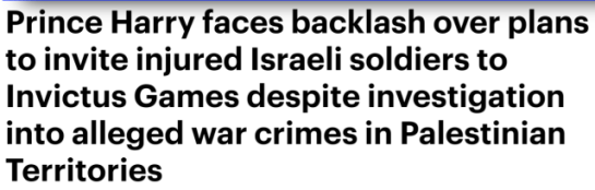 The Invictus Games, launched by the Duke of Sussex – himself a veteran – in 2014, allows wounded or sick military personnel and veterans to compete in sporting events. The inclusion of wounded Israeli veterans in the next biennial (in 2022), the Mail on Sunday article claims, echoing the headline, has caused a “backlash”.
