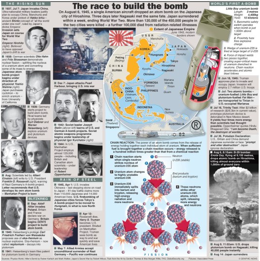 In 1938 Otto Hahn, a German chemist, was the first to succeeded in breaking up (fissioning) a uranium atom into lighter, atomically speaking, elements by bombarding it with neutrons. At the time, the idea seemed preposterous, even to him, and he doubted his own test results, but after overcoming his reservations he published it in a scientific journal. It was soon realized that this process could yield enormous amounts of energy. Leo Szilard, a physicist of Hungarian descent, already considered this possibility while staying in London in 1933. Hahn’s discovery, however, clinched the argument for Szilard, now working in the United States, and he was horrified by the possibility that Nazi Germany could develop such a bomb. He then convinced Albert Einstein to approach President Roosevelt to initiate an American atomic research program.