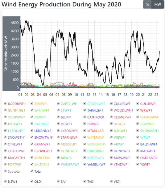 That’s the ‘performance’ of Australia’s wind power fleet so far this month – courtesy of Aneroid Energy