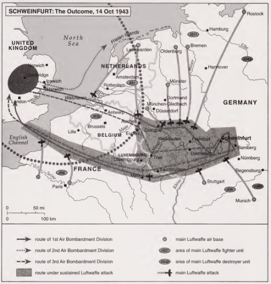 “The mission of October 14th had demonstrated that the cost of such deep penetrations by daylight without fighter escort was too high … the Eighth Air Force was in no position to make further penetrations either to Schweinfurt or to any other objectives deep in German territory.” US Official Report on the Schweinfurt Raid.