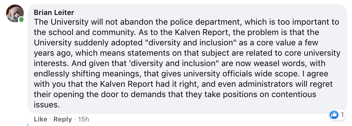 UPDATE: Professor Brian Leiter of the Law School (he’s the director of the Center for Law, Philosophy, and Human Values) added this comment to my public Facebook notice about this whole post:
