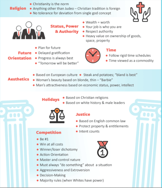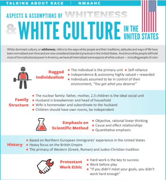 At least it seems that way judging from an infographic they put up in the Smithsonian National Museum of African American History and Culture, which already had a section devoted to “Whiteness“.