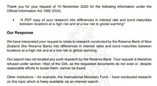 Not even a @ReserveBankofNZ file note on biggest #globalwarming #climateemergency risk to bank lending!