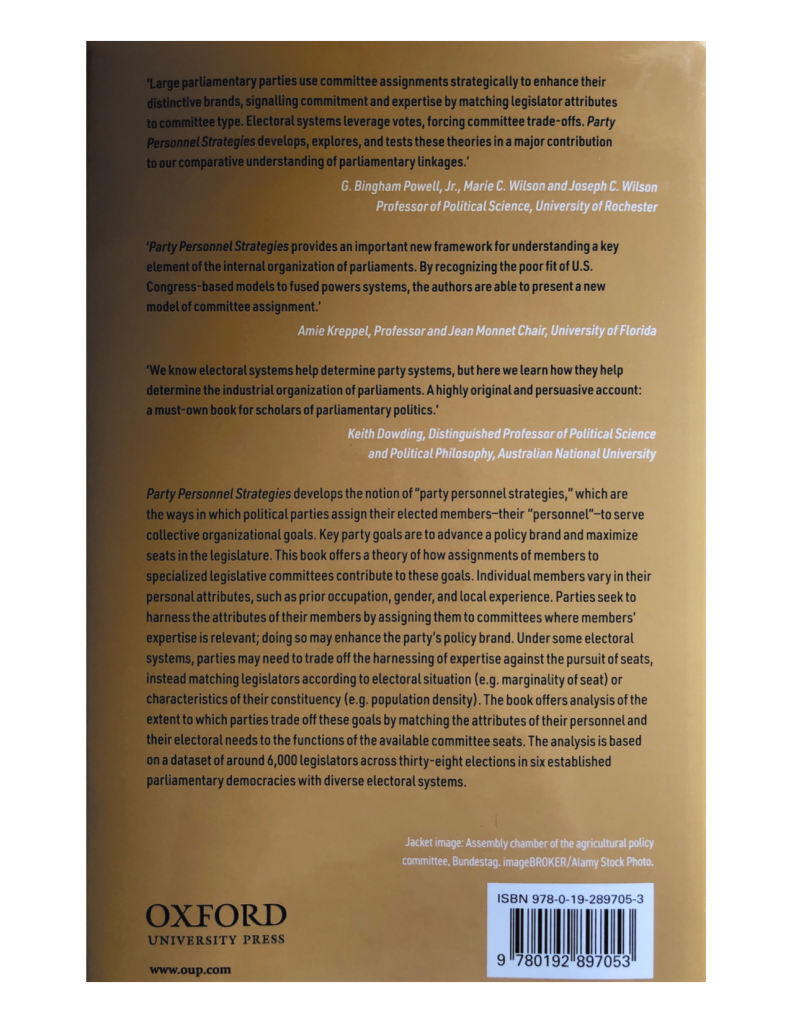Just received: My copy of Party Personnel Strategies: Electoral Systems and Committee Assignments.