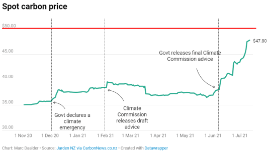The price of carbon on the ETS now sits at $48, just $2 below the $50 price cap.
