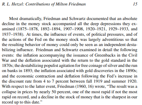 A Monetary History… provided the historical narrative supporting the contention that in many episodes, monetary instability arose independently of the behaviour of nominal income and prices
