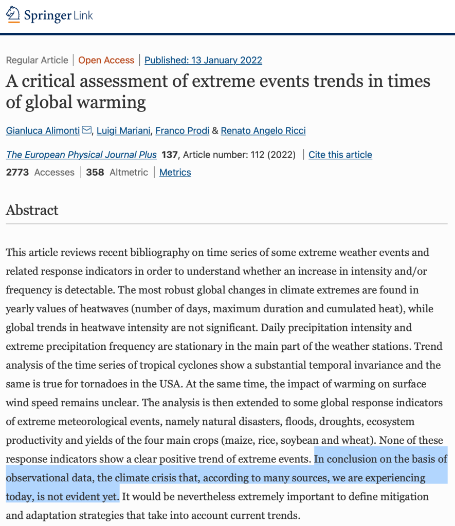Key quote: “…on the basis of observational data, the climate crisis that, according to many sources, we are experiencing today, is not evident yet.”