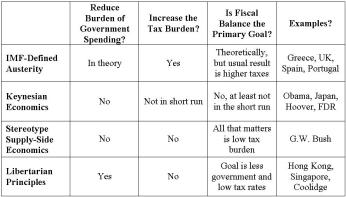 First, the definition of austerity is critical. Some fiscal policy folks (at the IMF and CBO, for instance) focus on deficits and debt.