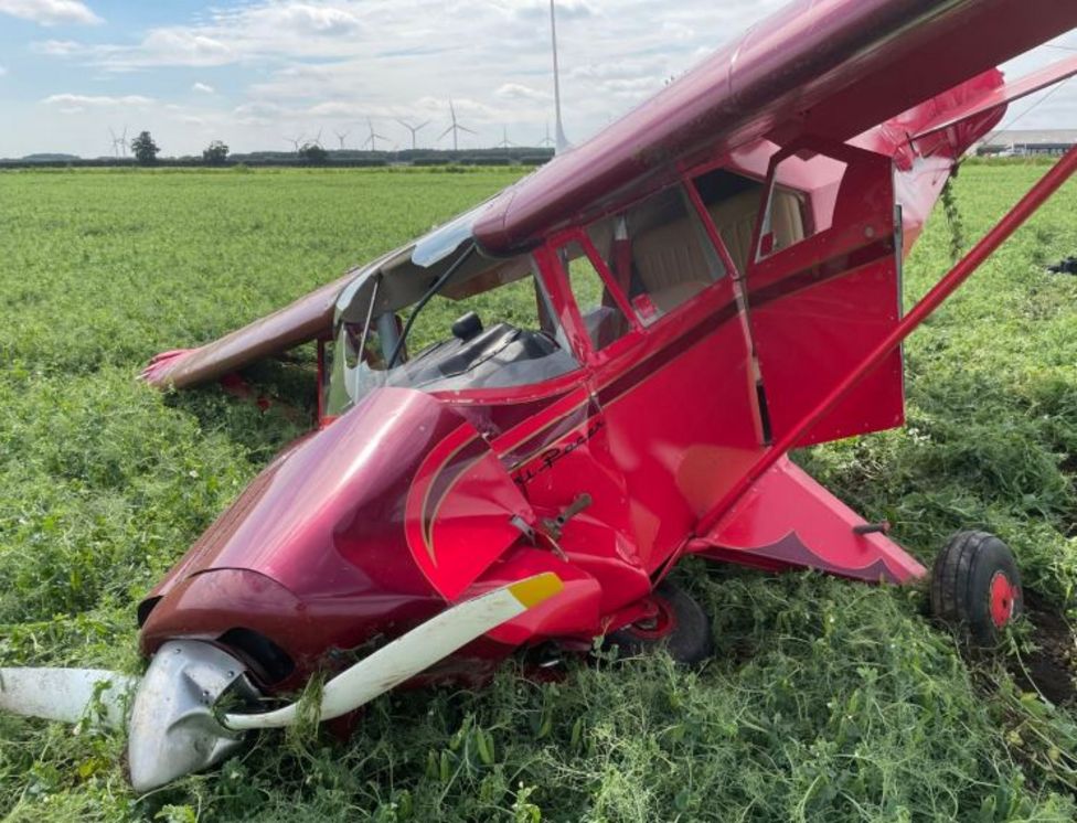 A pilot injured in a crash landing has claimed a “violent” gust which caused him to lose control of his plane may have been caused by a nearby windfarm.