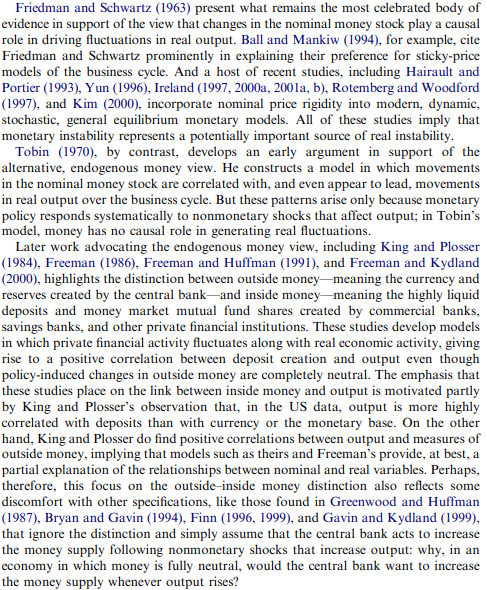 Nice summary by Peter Ireland (2004, JME) of endogenous money debate